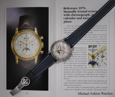 Patek Philippe introduced the reference 3970 in 1986 and it has it has assumed a status within the hierarchy of Patek Philippe's most classic and rarest perpetual calendar chronographs. The model was available in yellow, white and pink gold and platinum reference 3970 was replaced by reference 5970 in 2005.